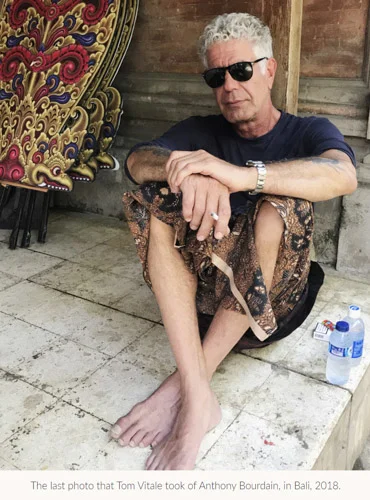 The shock of Tony's suicide at the beginning of the next Parts Unknown shoot was... immense. Many at ZPZ, including director Tom Vitale and camerman Todd Leibler, had worked with Tony throughout the entirety of their careers. And though we'd only been sucked onto their whirlwind over the last few months, we felt the sense of family fostered by a crew that spent more time on the road than with real family back at home. And forged under the special trials brought on by productions that push envelopes through storms of egos, social unrest and unruly natural elements. (We'll spare you the saga of a near-stranding on a far-flung island, amid rising surf and falling tides.)