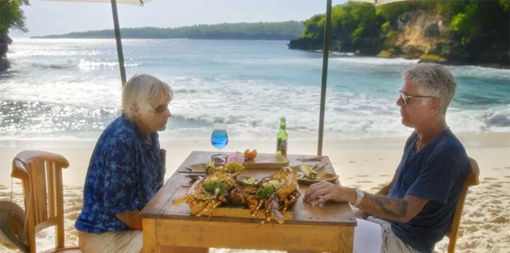 Bourdain begins his trip through Indonesia by eating spicy Padang food in Jakarta with a performer who uses shadow puppets to tell folktales about finding balance between opposing forces—dark and light, good and evil—an ever-present idea in Indonesian culture. As he travels throughout the country, Bourdain learns about the nation’s ethnic and culinary diversity and how it reconciles its violent history with its democratic present. In Bali, Bourdain confronts Indonesia’s Eat Pray Love–inspired tourism industry and observes a traditional Balinese funeral.